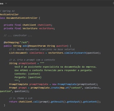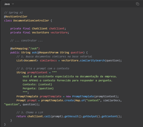Vamos construir um serviço REST simples que responde a perguntas sobre o conteúdo de um arquivo de texto, usando Spring AI e a técnica de RAG.